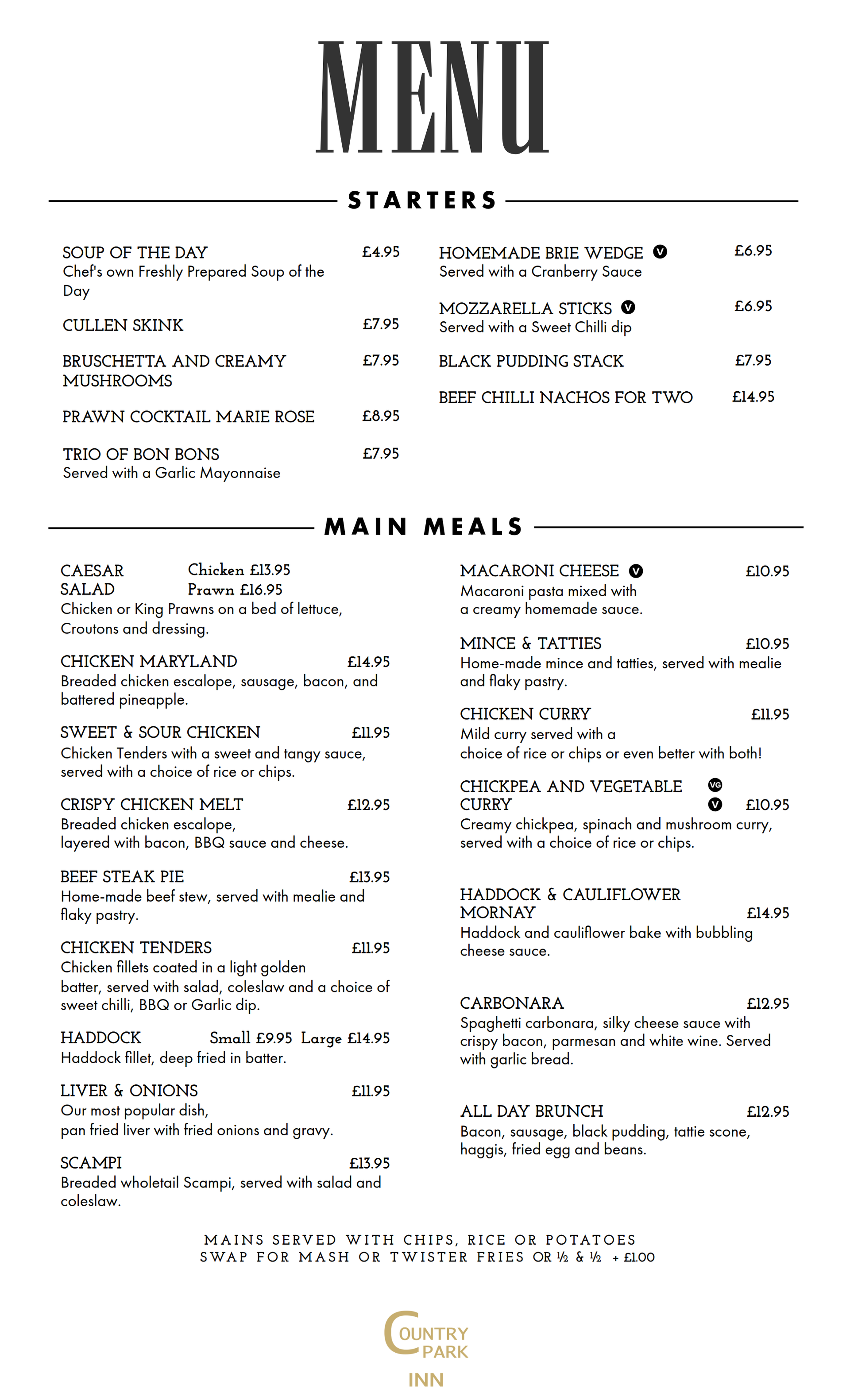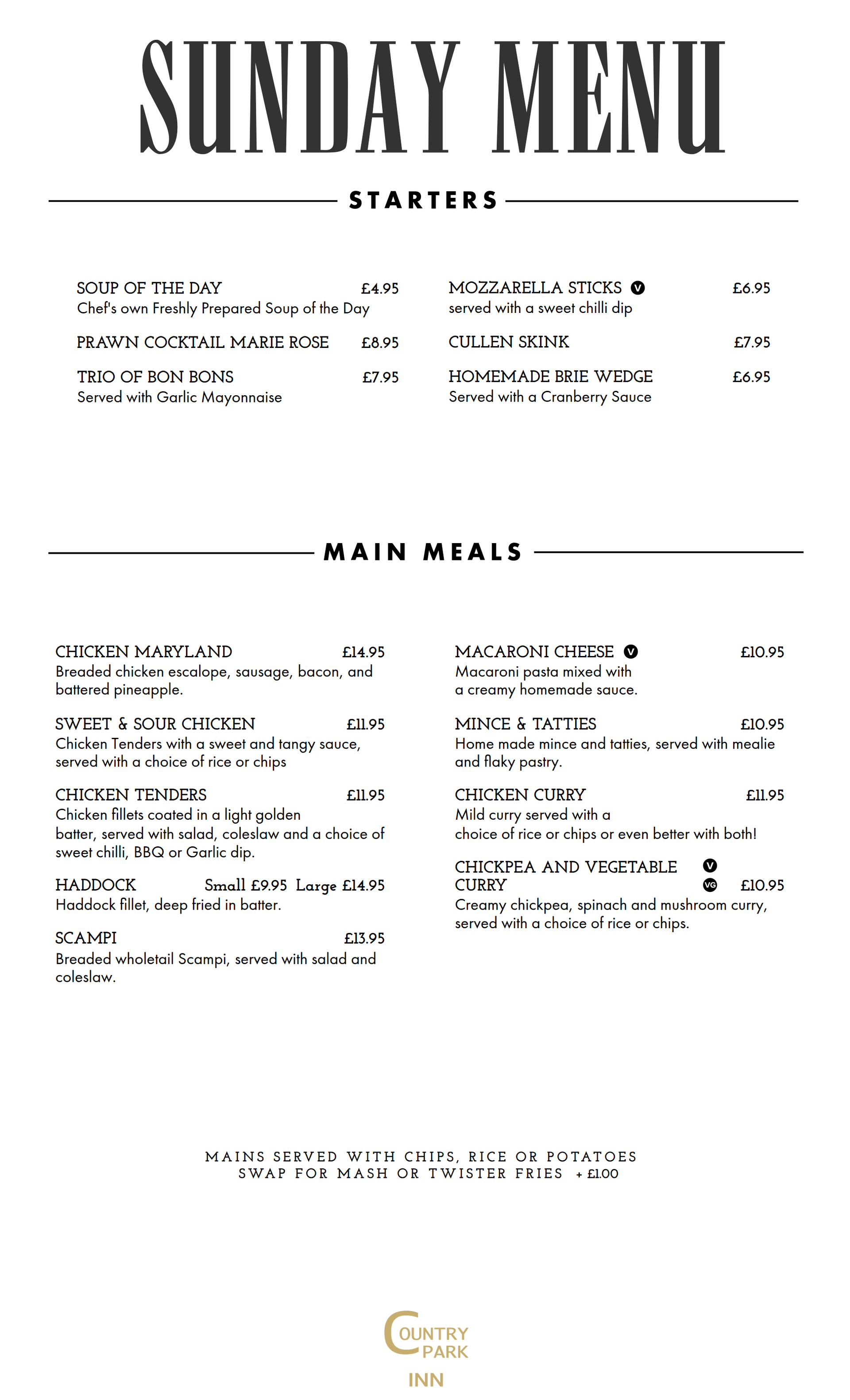 Meals are served daily in our newly decorated restaurant and our friendly bar throughout the day and we have our fantastic carvery serving every Sunday.